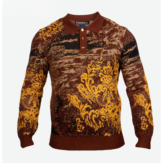 Prestige Luxury Brown Black Yellow Polo Sweater - SW-652