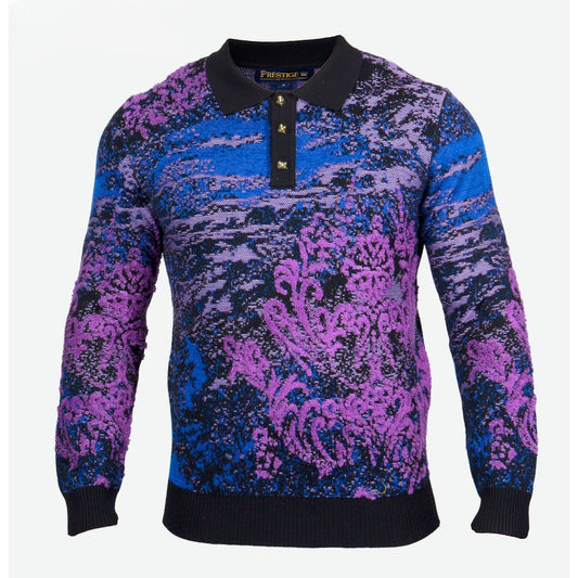 Prestige Luxury Black Purple Polo Sweater - SW-652