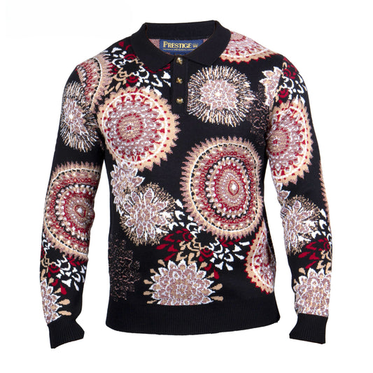 Prestige Luxury Black Burgundy Polo Sweater - SW-654