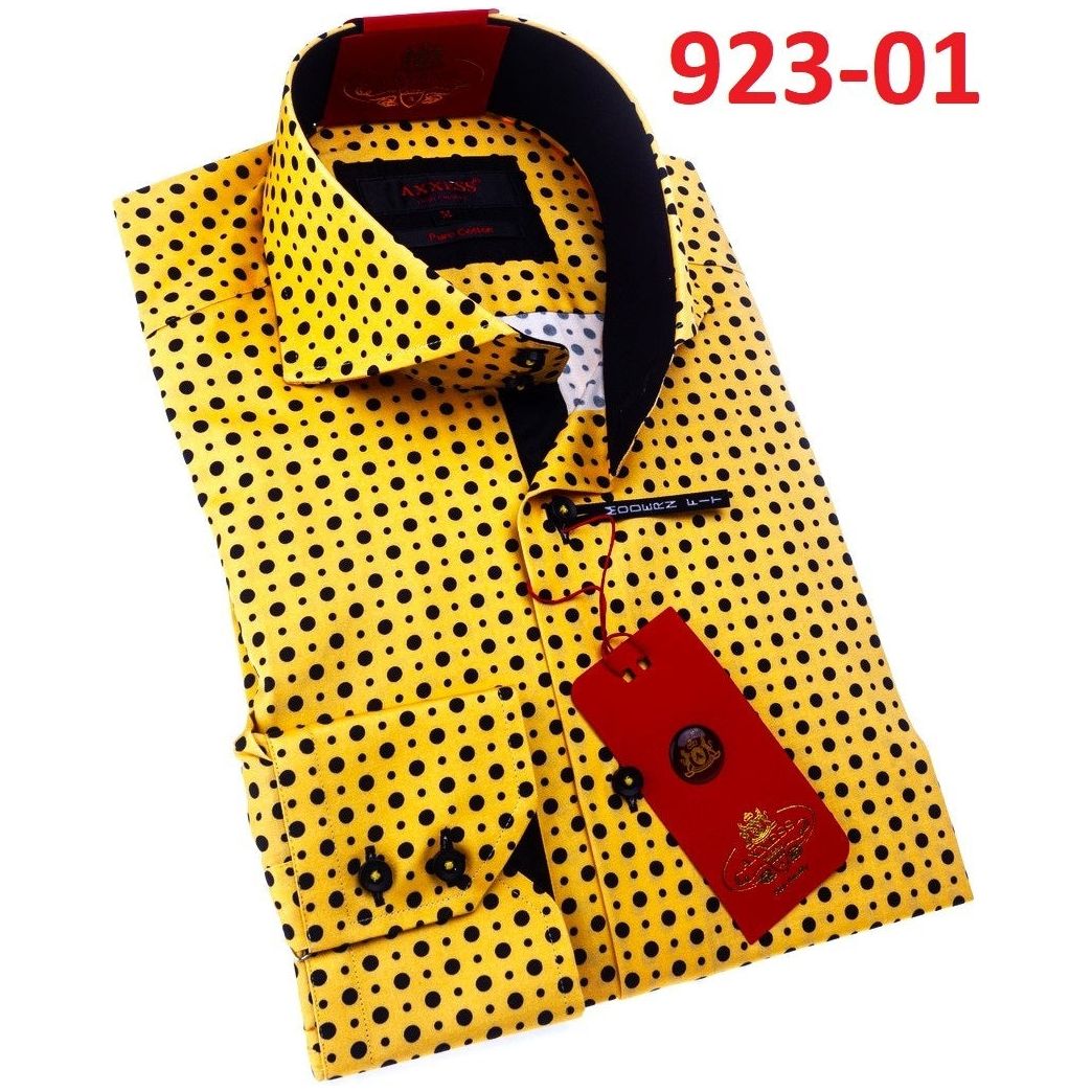 Axxess Yellow Black High Collar Cutaway Casual Shirt -