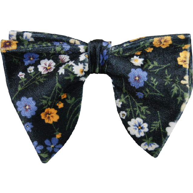 Black Floral Velvet Butterfly Tear Drop Bowtie