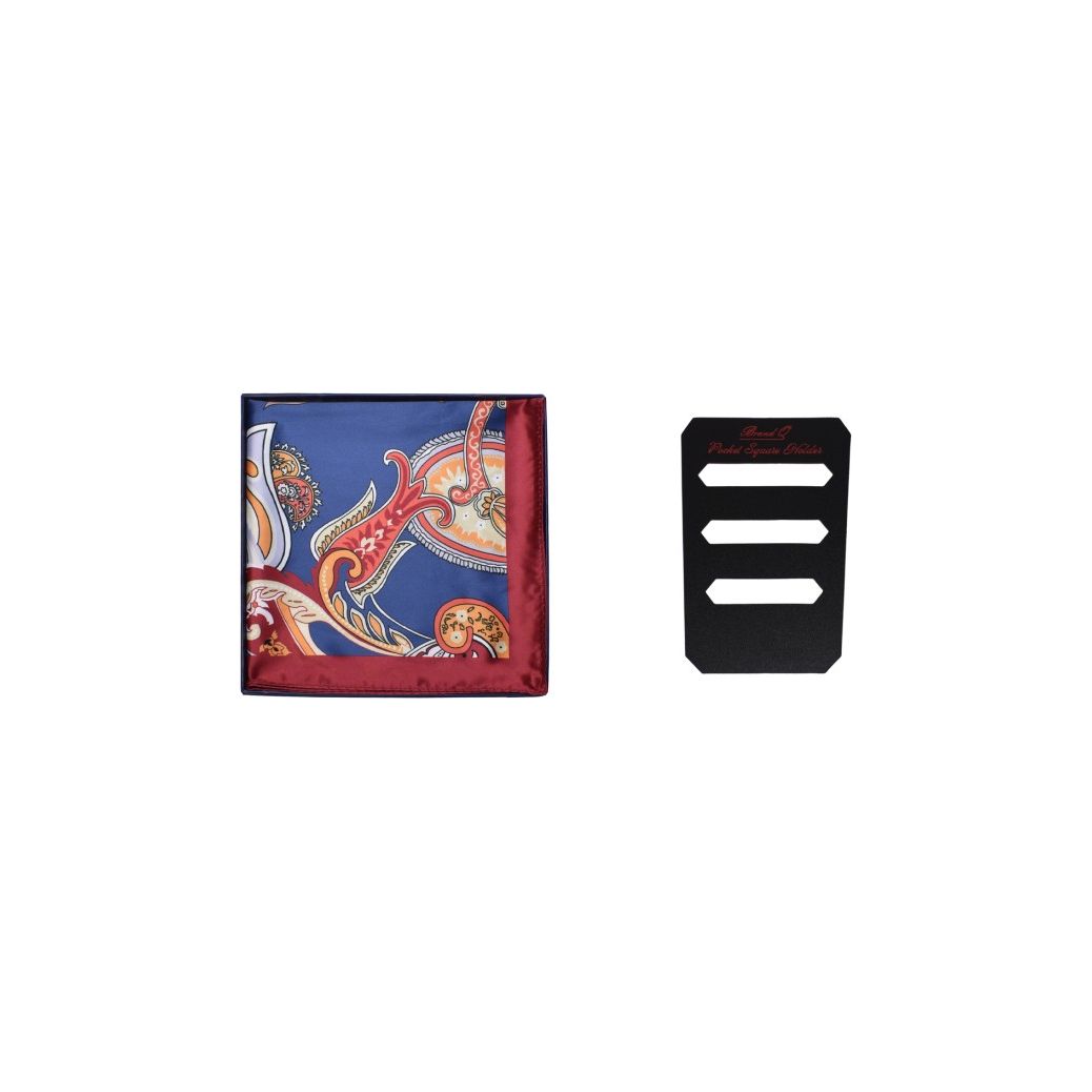 Crafted from luxurious silk, the BQ Navy Burgundy Gold Paisley Pocket Square exudes elegance with its stylish color combination. Complete your look effortlessly and keep it in pristine condition with the free pocket square holder included. Elevate your ensemble with this sophisticated accessory today! HP200-B
