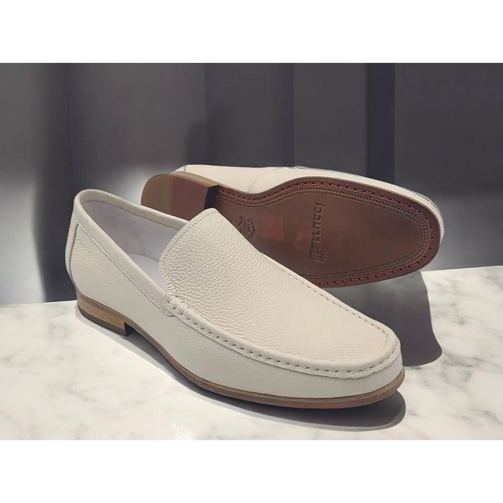 Experience the epitome of luxury with the Carrucci Bone Dear Skin Leather Sole Slip-on Loafer. Crafted from premium leather, these loafers offer a comfortable fit without compromising on style. Elevate your footwear collection with this sophisticated and timeless design. Francis, KL201-02. The timeless Slip-on Loafer in Leather Sole have a lasting beauty compiled with a classic look. This pair has the leather sole's elegance, a leather upper, and leather lining.