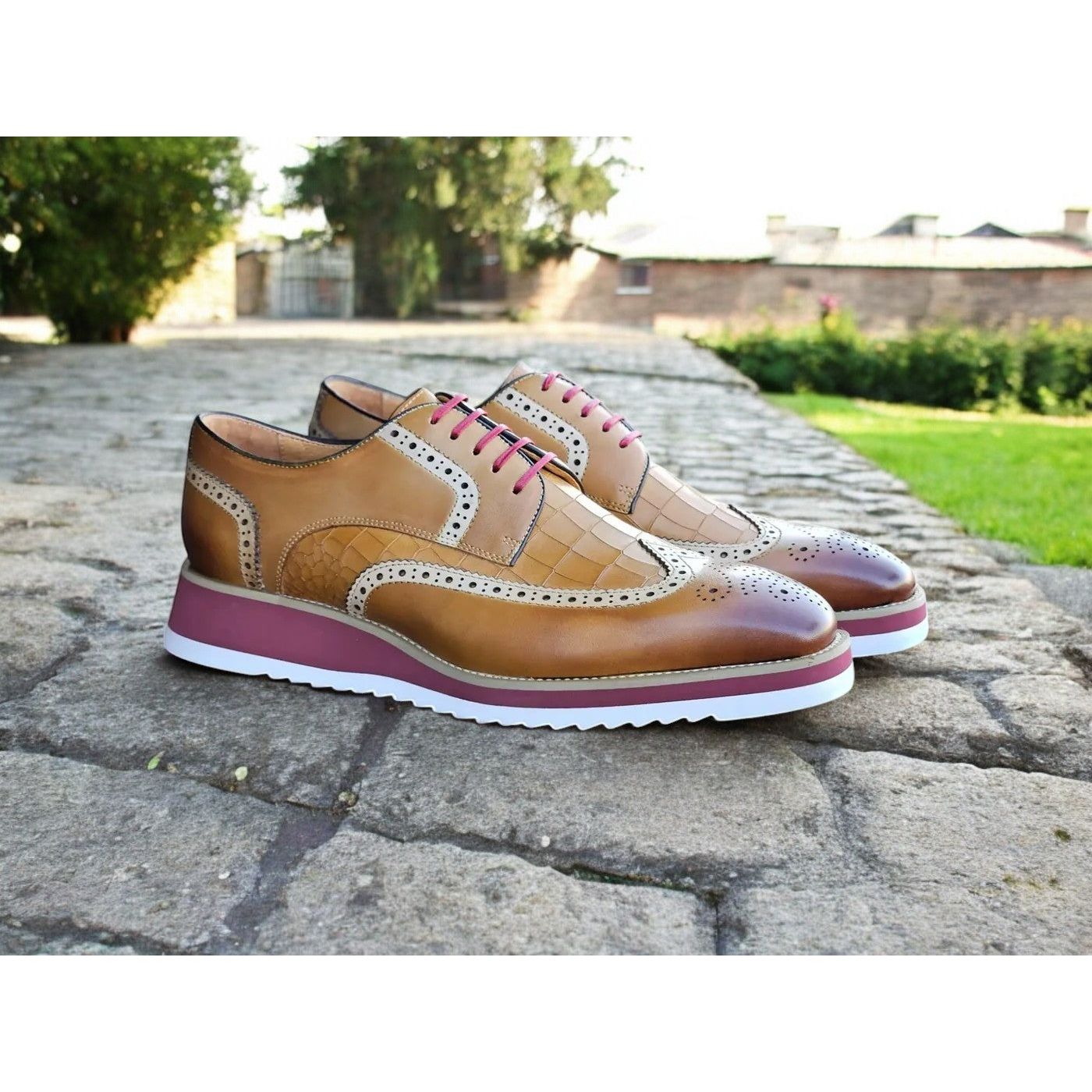 A combination of smooth and croc embossed calfskin upper leather lining and lightweight and flexible outsole.