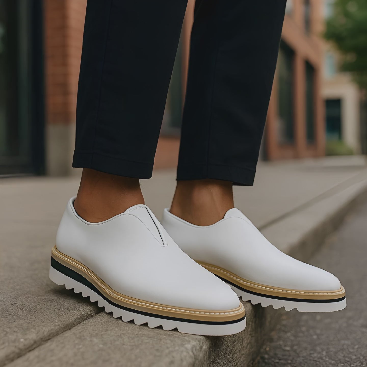 Carrucci Laceless White Casual Loafer With Contrast Color Lightweight Sole