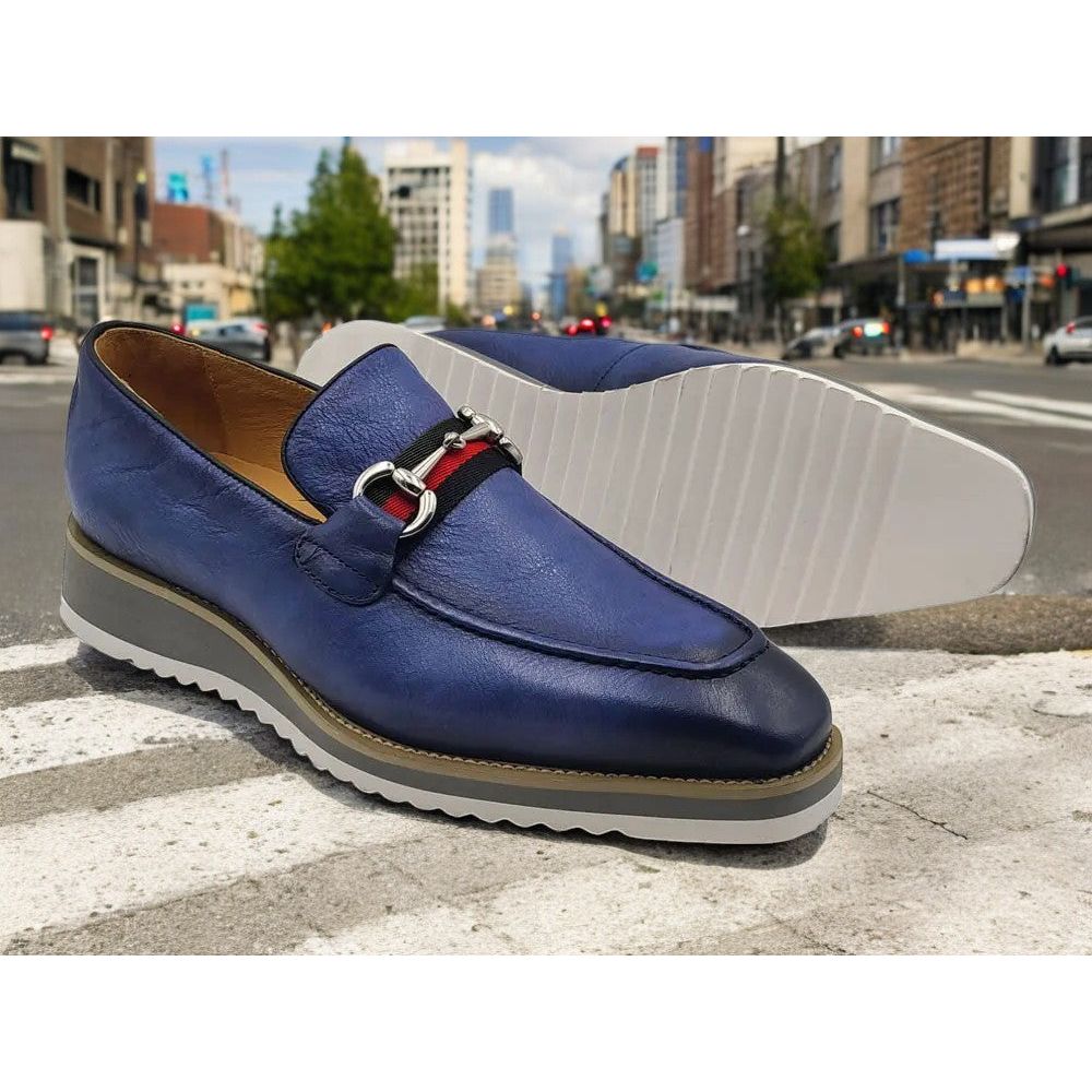 KS515-07R Ocean Blue Horsebit Buckle Loafer Leather Patina Loafer brings the stature of genuine leather. The pair comes with a sizzling look that is extravagantly lustrous. The Embossed Leather's presence adds strength and comfort of wear, and durability to the Patina Loafer mix. The combination can be your wardrobe staple if you have to make a choice worth your investment. Features leather upper, padded leather sock, lightweight EVA sole