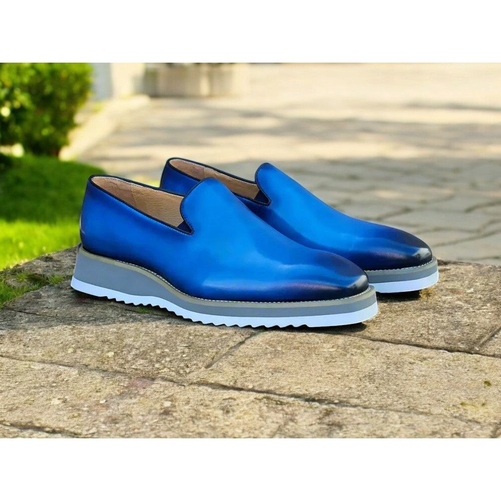 Step into luxury with the Carrucci Sky Blue Burnished Whole Cut Loafer. Meticulously handcrafted for unparalleled quality, these loafers offer a comfortable fit without compromising on style. Elevate your footwear collection with this luxurious and sophisticated design. Bring Carrucci Burnished Whole Cut Loafer into your footwear collection for an eclectic addition to your ensembles. Whole Cut leather upper features hand burnished detail. Available in different colors, including ocean blue, black, burgundy, cognac and white. Slip-on construction, Plain toe, and all leather linings.