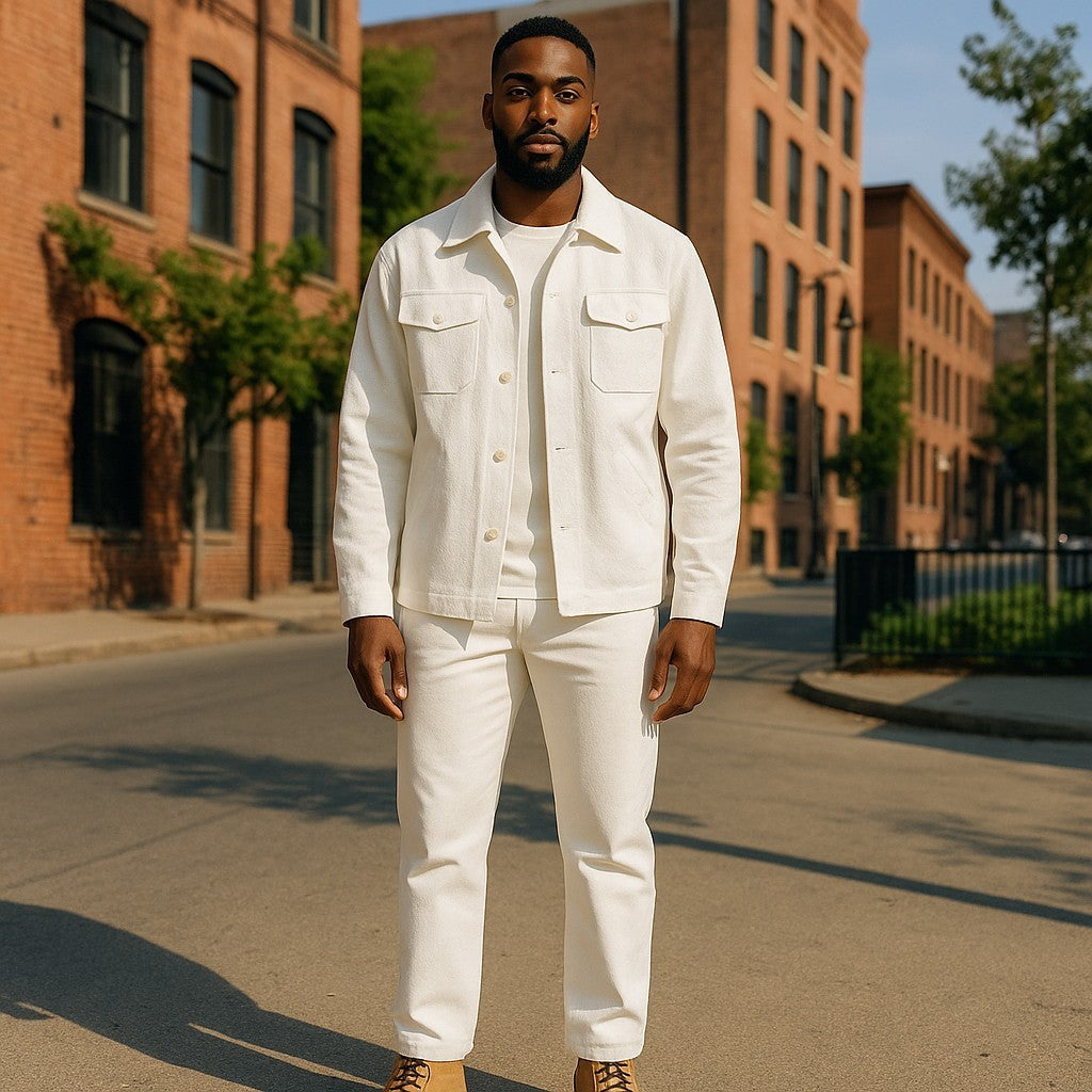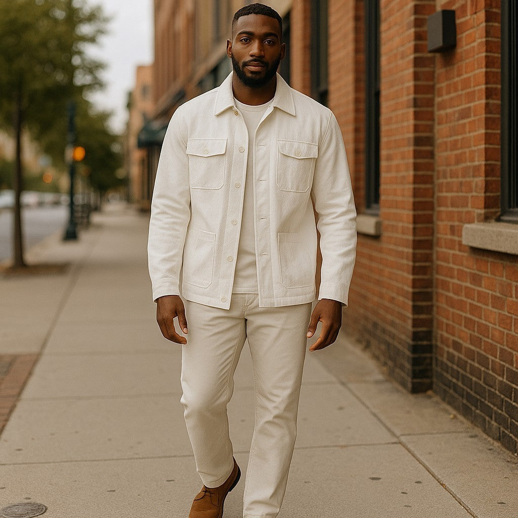 Cigar Couture White Seersucker Bomber Suit - CJP-695