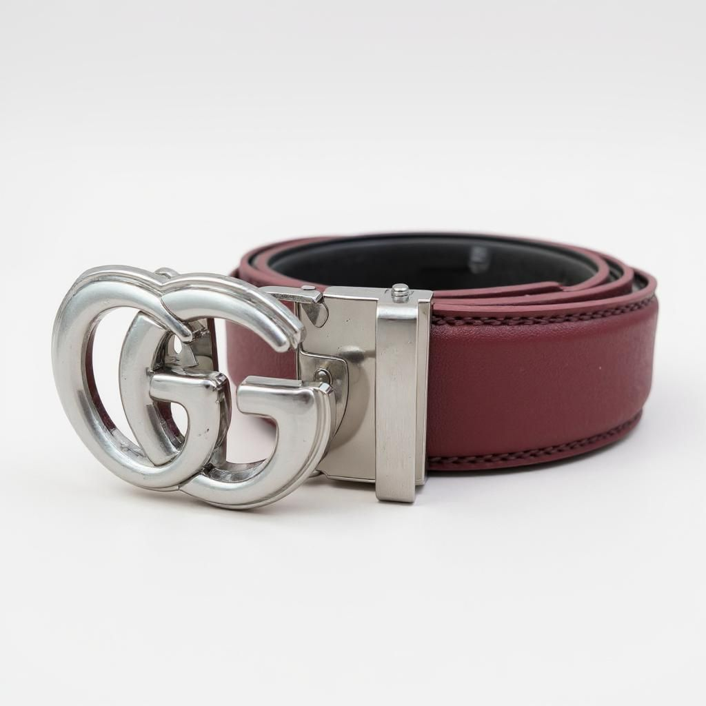Designer Silver GG Genuine Leather Burgundy Belt G822s