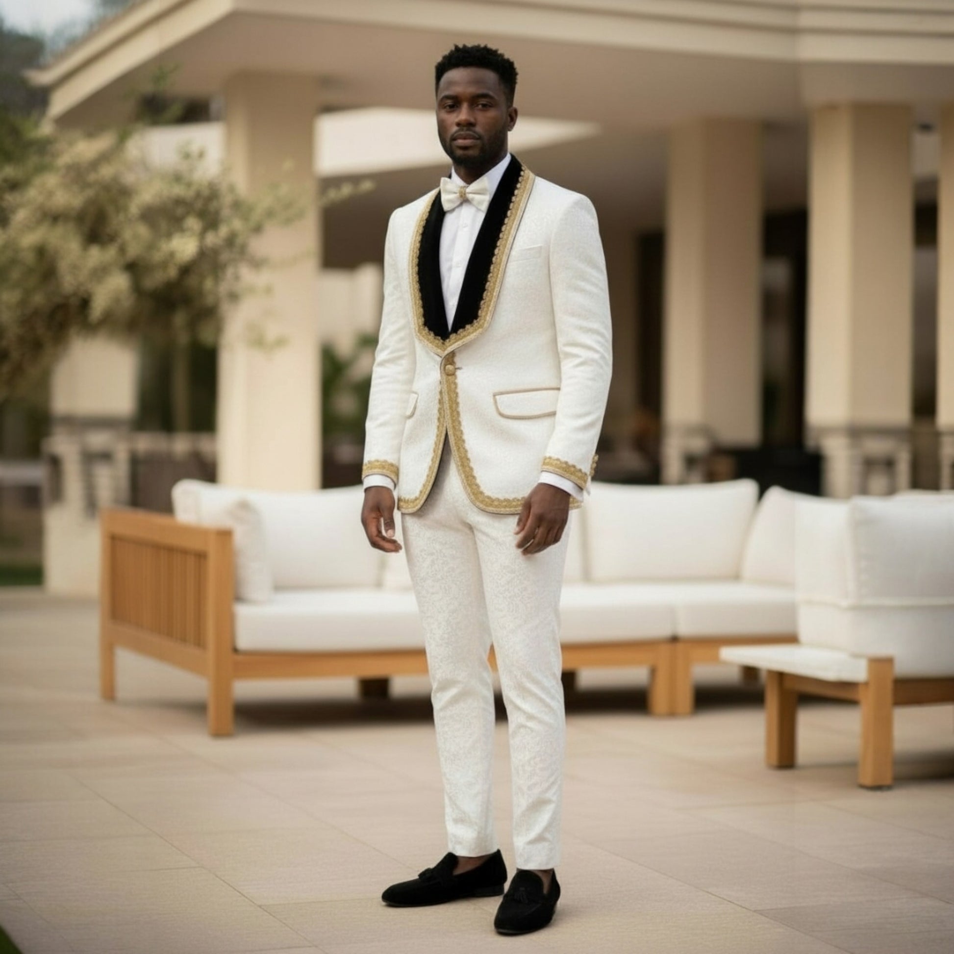 Manzini White Gold Chanel Wedding Prom Tuxedo Suit