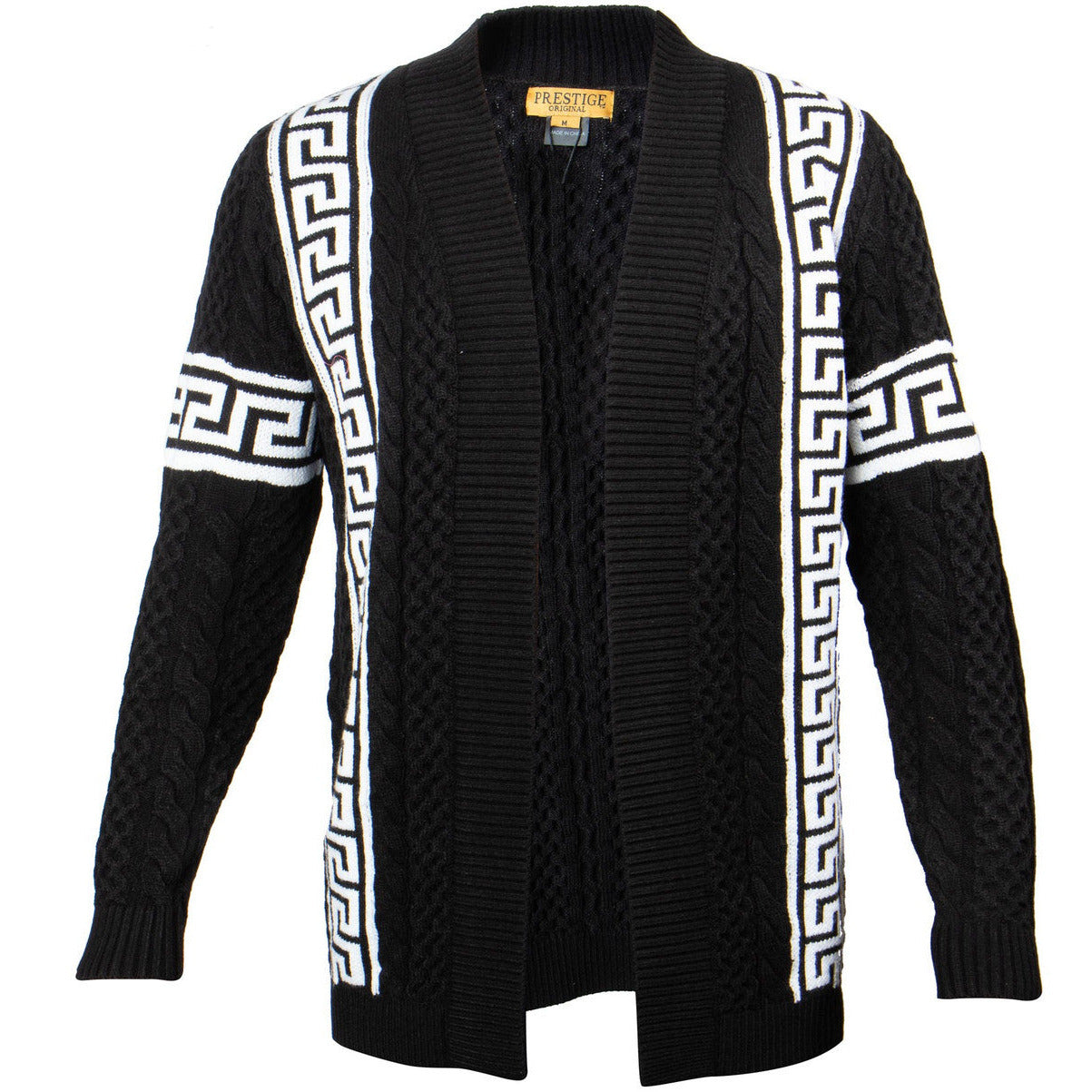Prestige Black White Greek Key Trim Sweater Jacket PD-550-BLACK