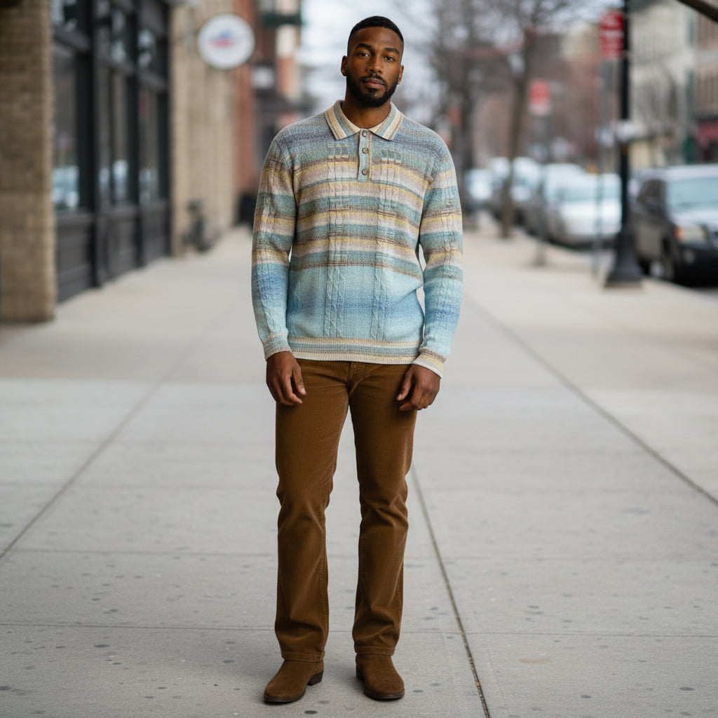 Elevate your wardrobe with the Prestige Blue Textured Luxury Polo Sweater (SW-294). Crafted with a luxurious textured finish, this sweater combines timeless polo style with modern sophistication. Designed by a prestigious brand, it offers both comfort and elegance, making it ideal for any occasion.