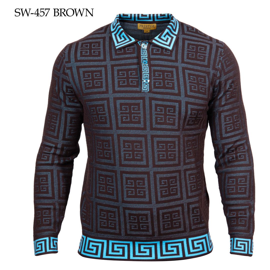 Prestige Brown Blue Greek Key Polo Sweater SW-457