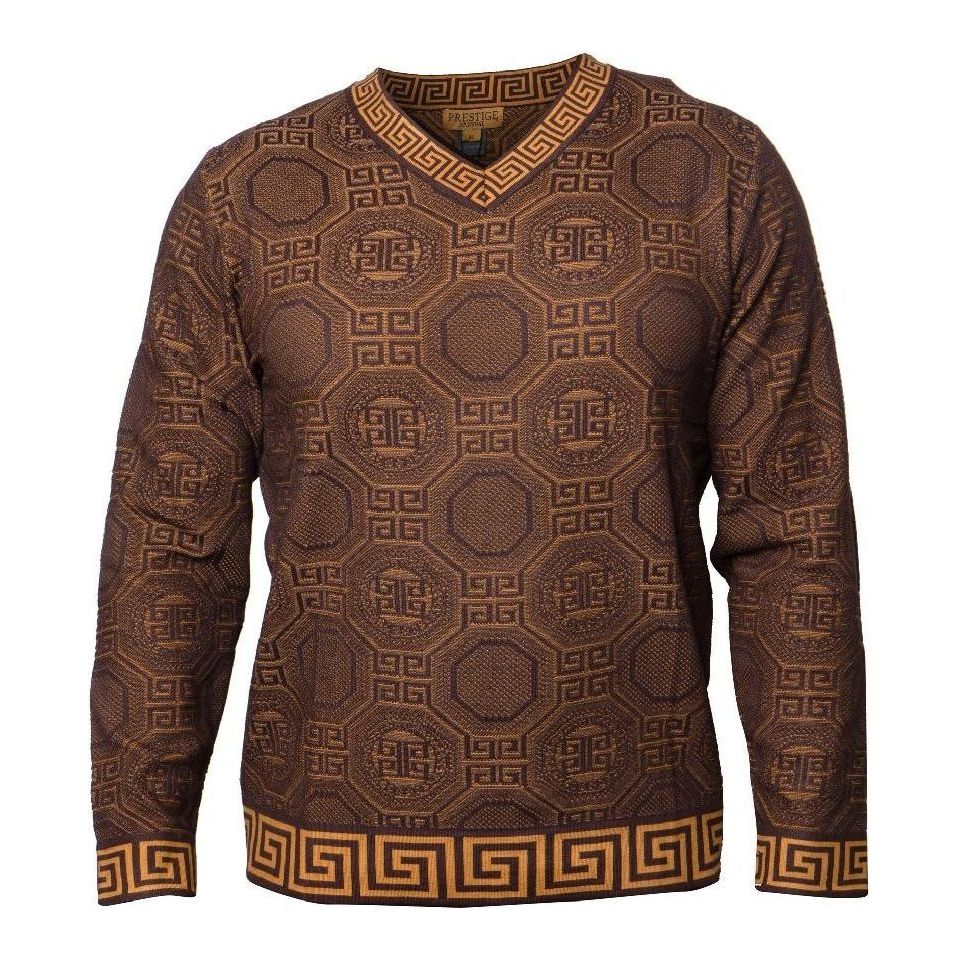Prestige Brown Greek Key V-Neck Sweater - SW-468