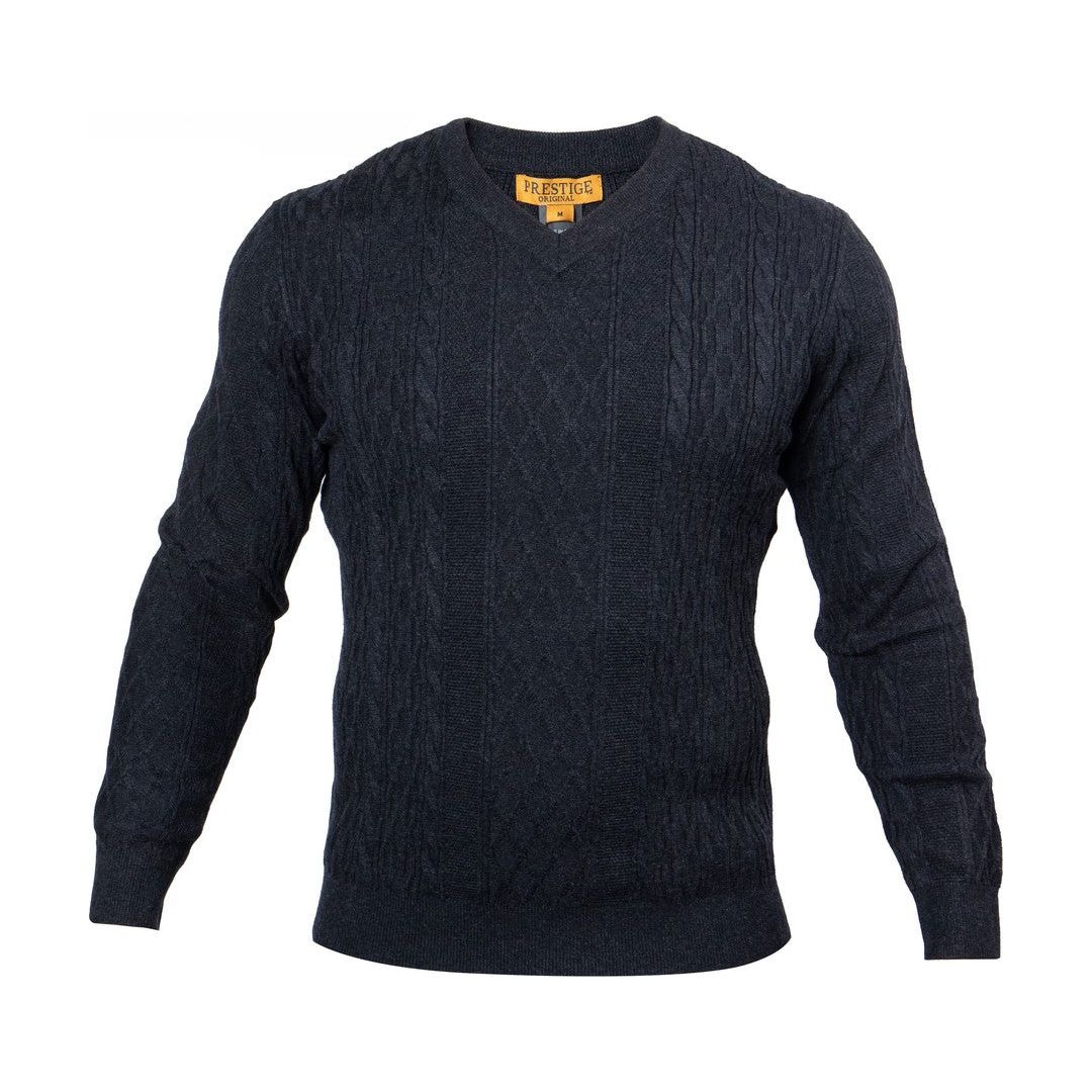 Prestige Charcoal Gray V-Neck Cable Sweater SW-563