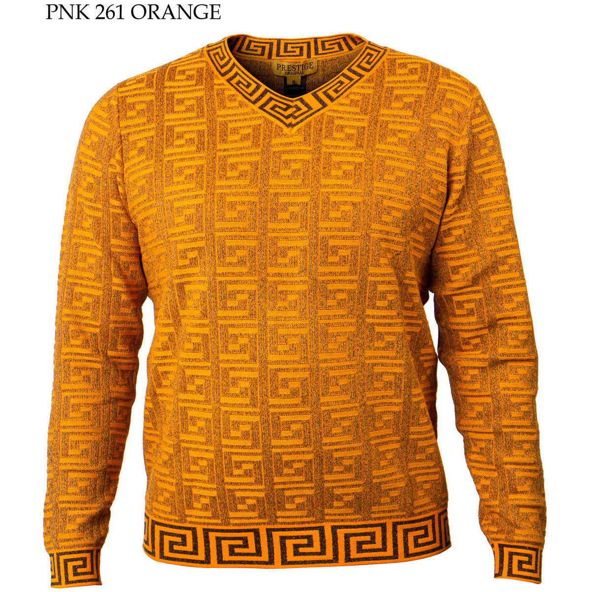 PRESTIGE GREEK KEY ORANGE CARDIGAN SWEATER