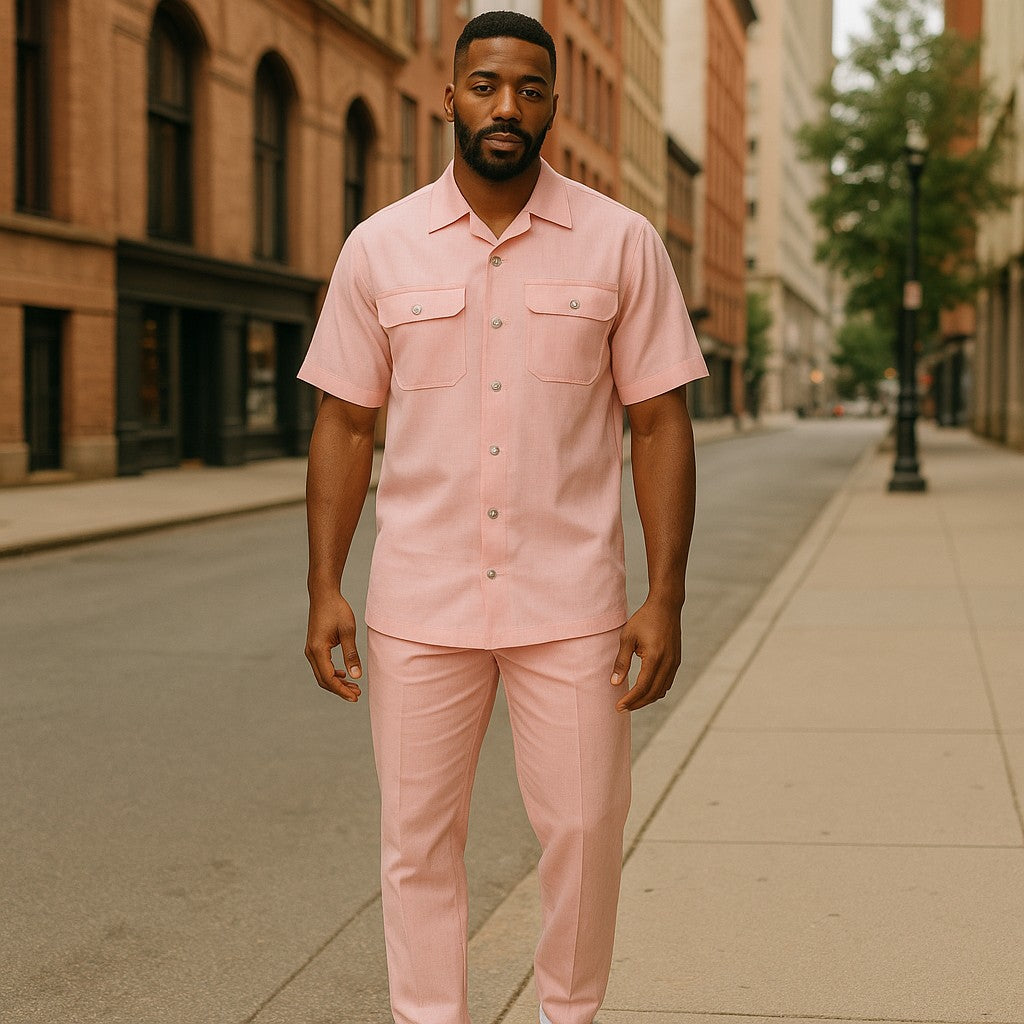 Prestige Luxury Pink Dusty Rose Herringbone 2 Piece Casual Suit LYC-400