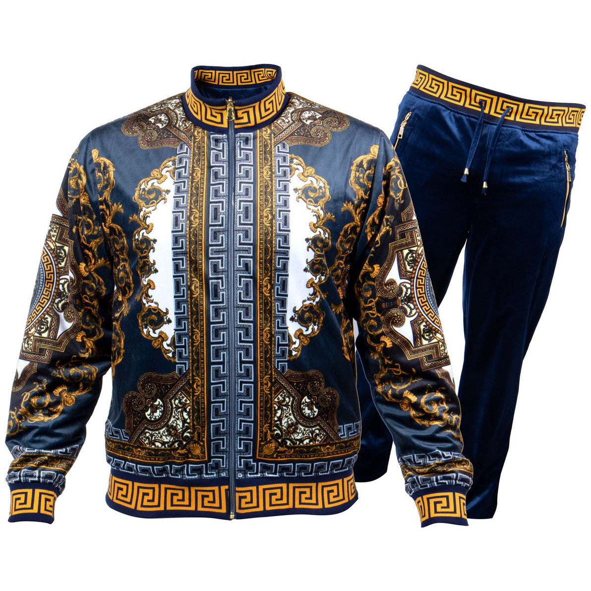 Prestige Navy Blue Gold Reversible Velvet Luxury Jogger Suit