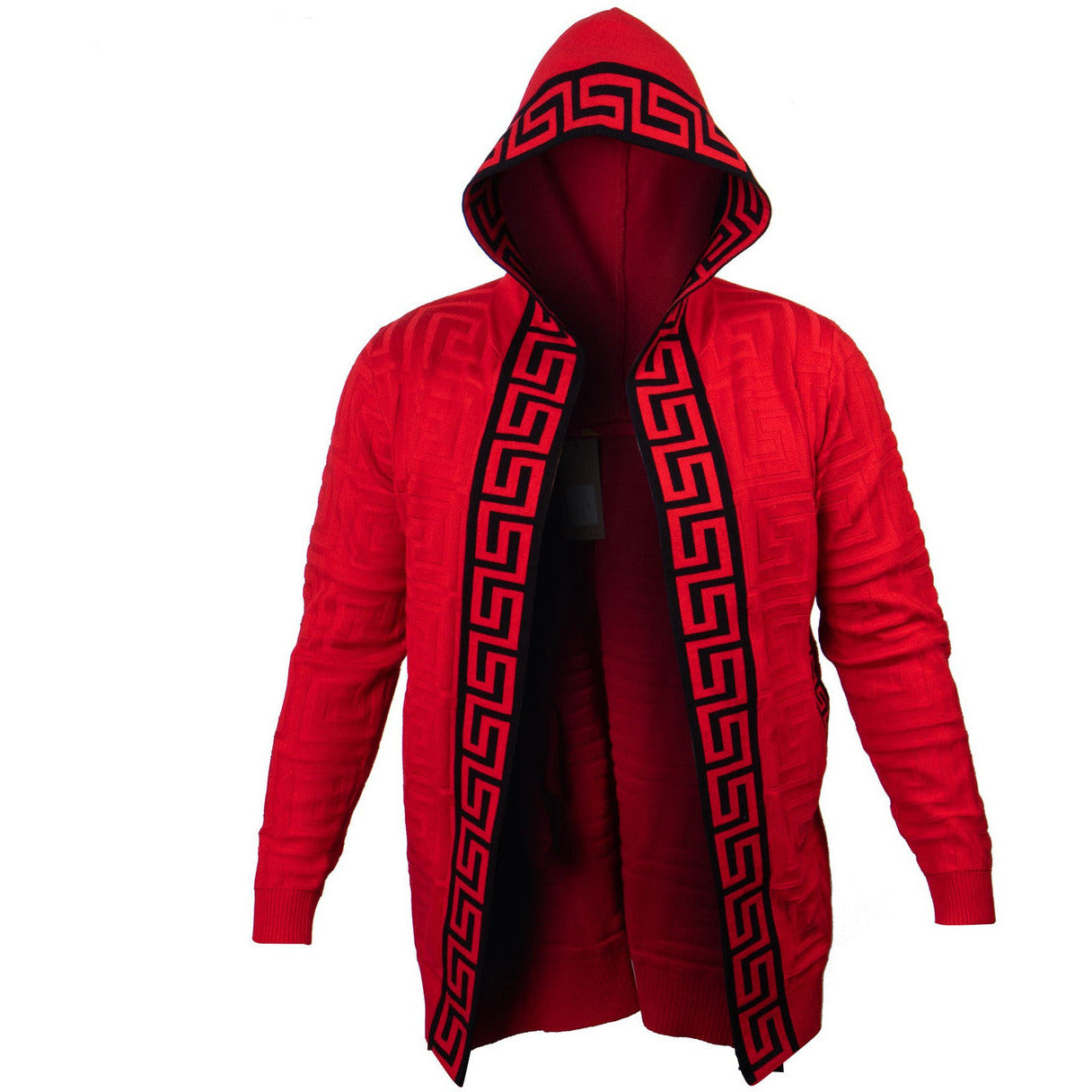 Prestige Red Black Greek Key Trim Hooded Sweater Jacket SW-021-RED