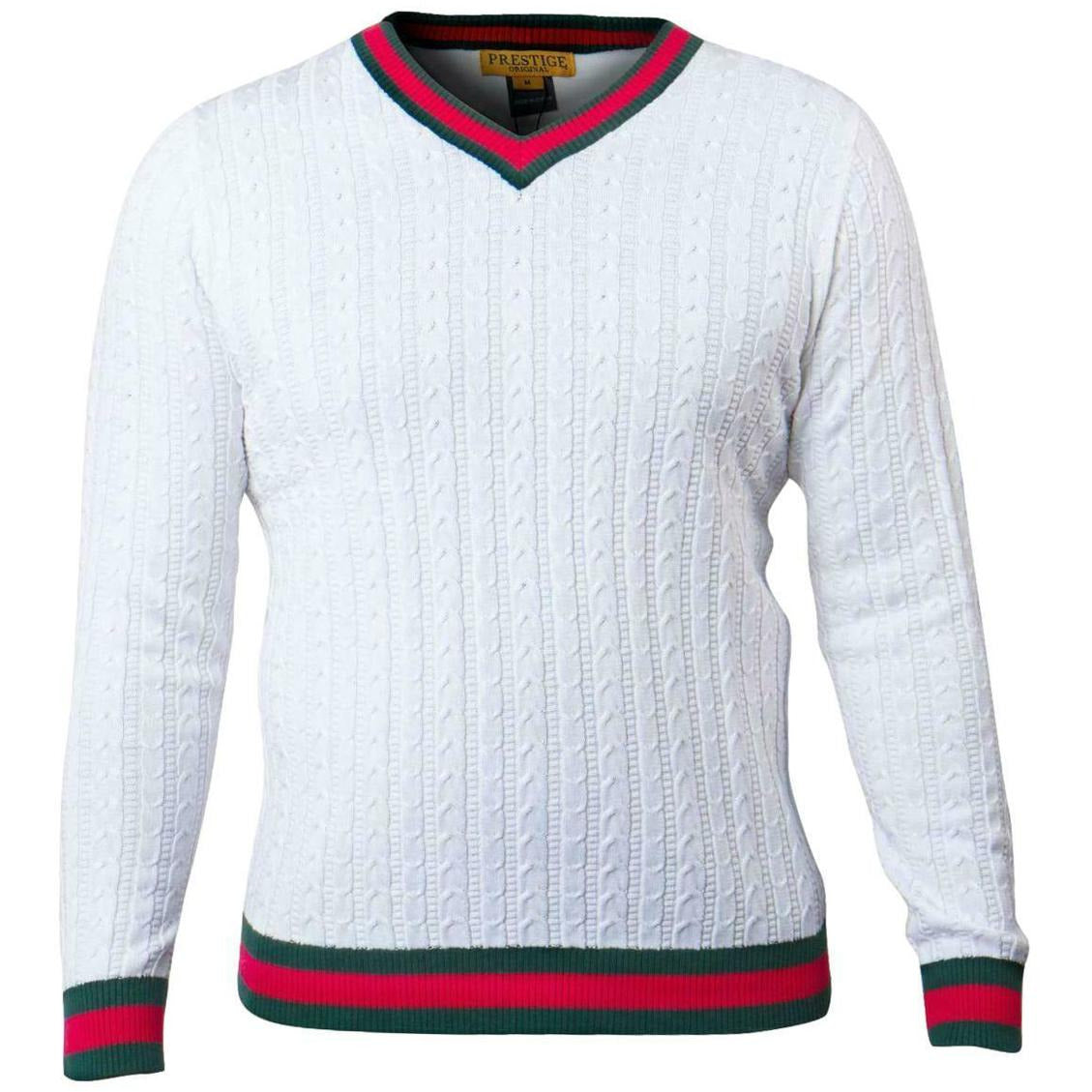Prestige White Green Red Cardigan Sweater - SW-063-WHITE FW20