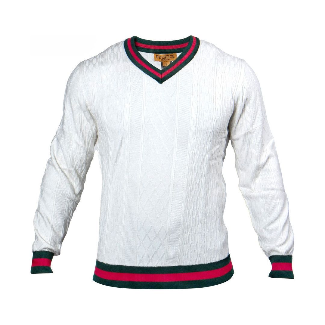 Prestige White Red Green Collar V-Neck Cable Sweater SW-563