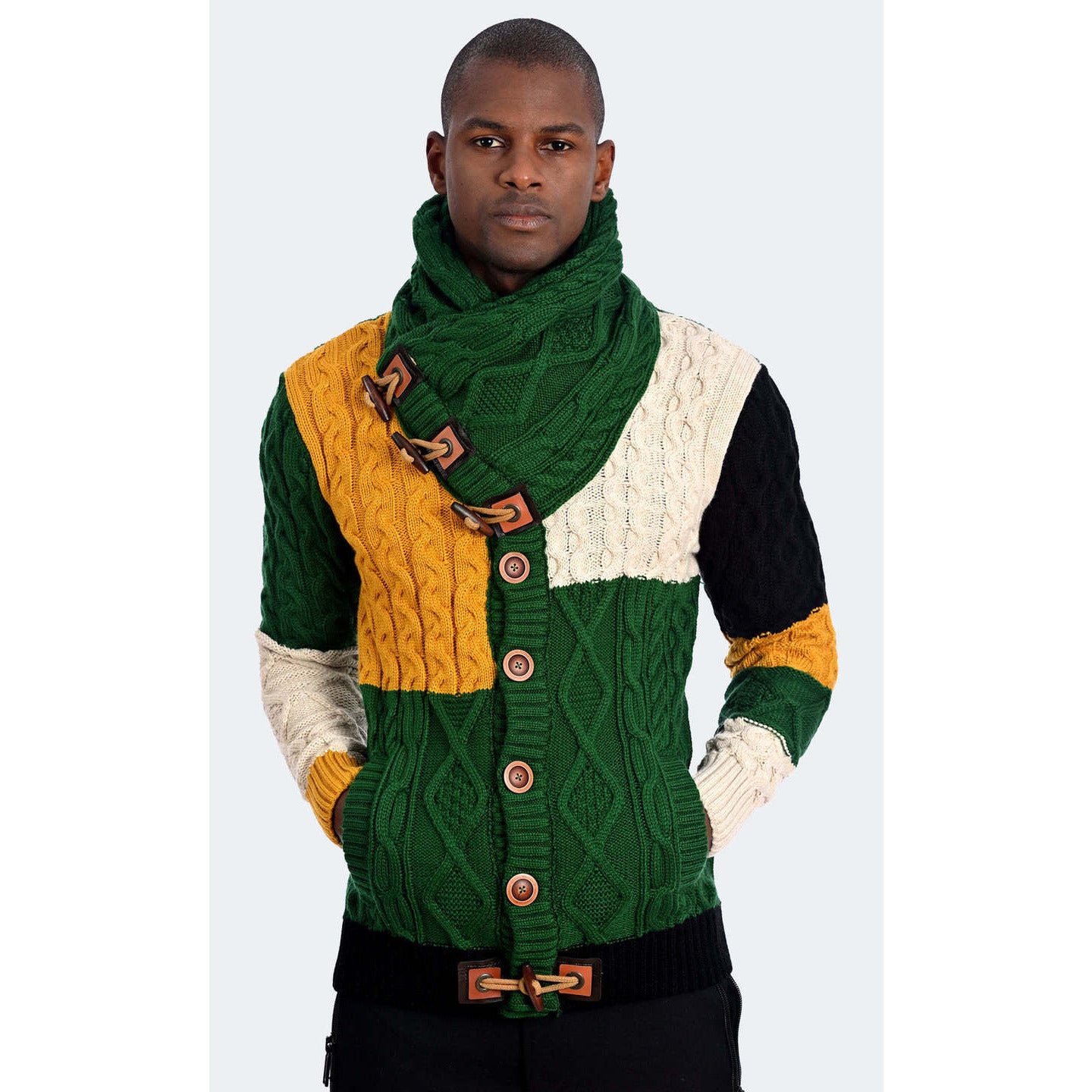 TABE Green Yellow Beige Black Wrap Neck Cardigan Sweater