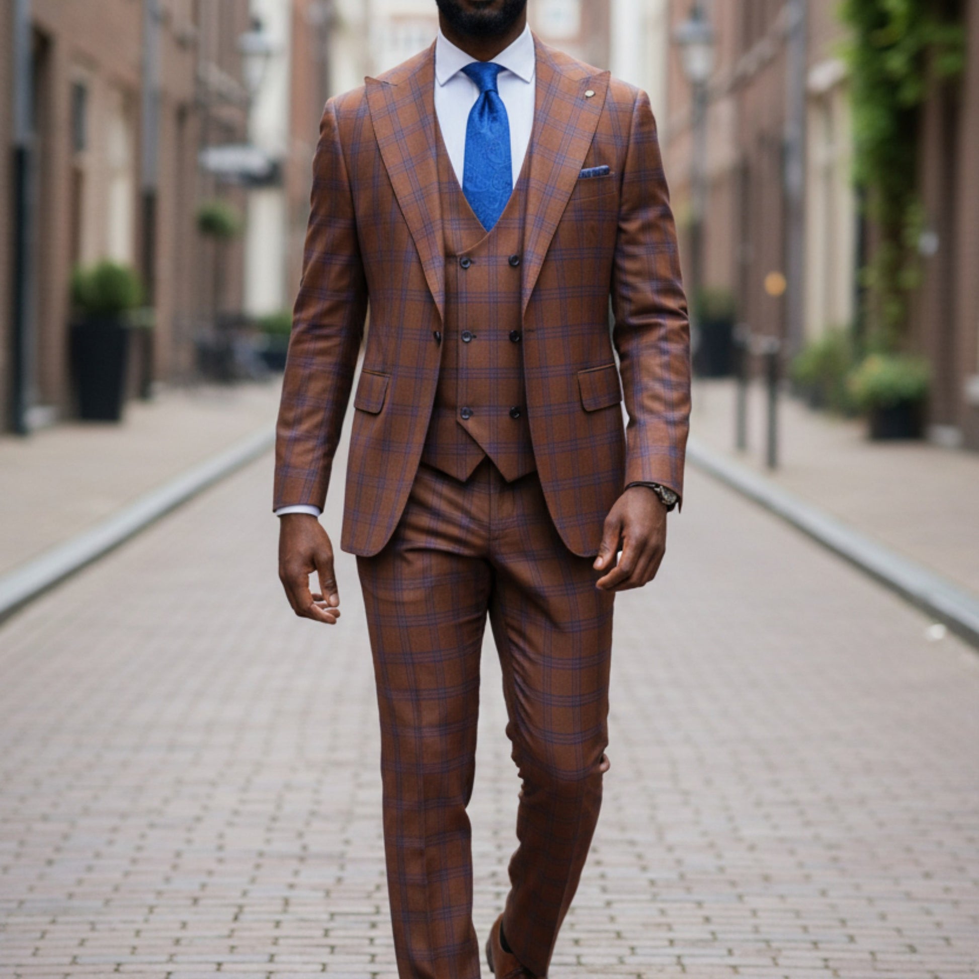 Tiglio Orvietto Rust Blue Windowpane 3 PC Suit - TL3302