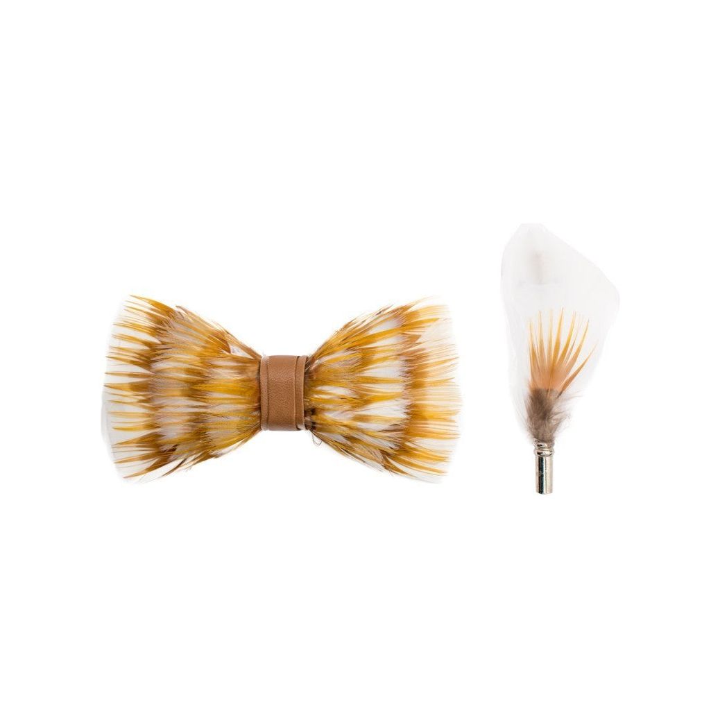 White Gold Feather Brackish Bowtie With Lapel Feather